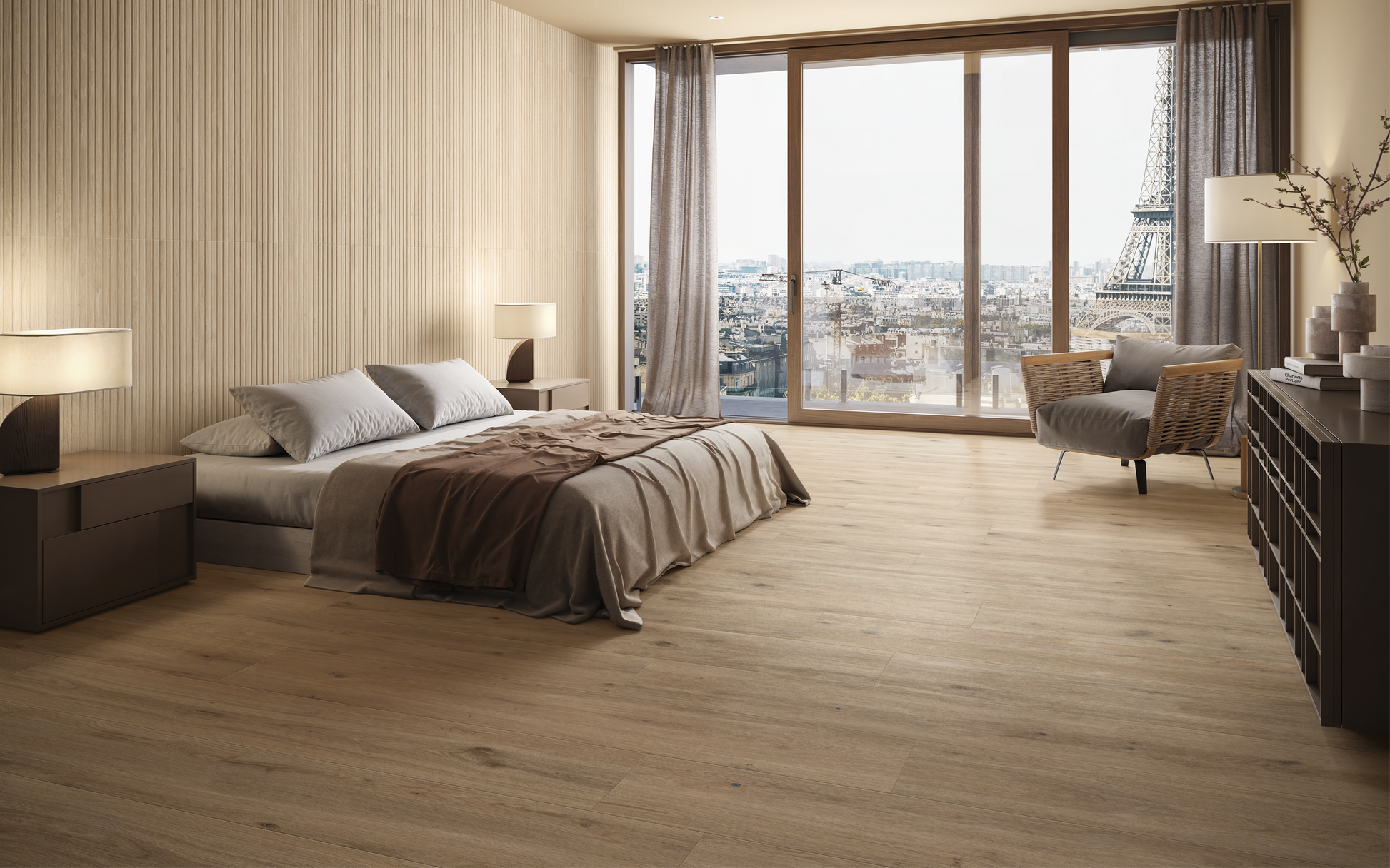 The Sapien Wood collection is a cutting-edge innovation crafted using advanced Sync Effect technology. This technology enables the creation of digital surfaces that capture the authentic look and feel of natural wood with remarkable precision and intricate detail. Available in three warm tones, the collection also features beautifully designed decor tiles with grooves, offering a textured and structured appearance that enhances any space.