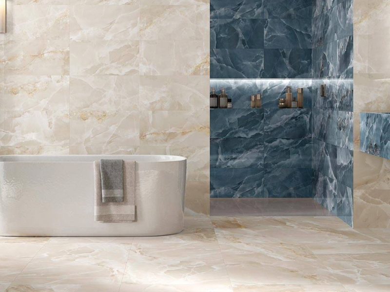 Oceanna Onice proves that tiles don’t have to be boring. Inspired by natural onyx, known for its layered, translucent look, these Spanish tiles bring bold style and colour into the home. Available in rectangular format wall tiles and square floor tiles, the range includes blue, green, pink, white and ivory options. The gloss finish tiles reflect light, helping to open up smaller rooms. These on-trend tiles are especially effective as feature wall tiles, ideal for use in bathrooms, including downstairs cloakrooms, where they add colour and interest. Definitely not your standard tile range!